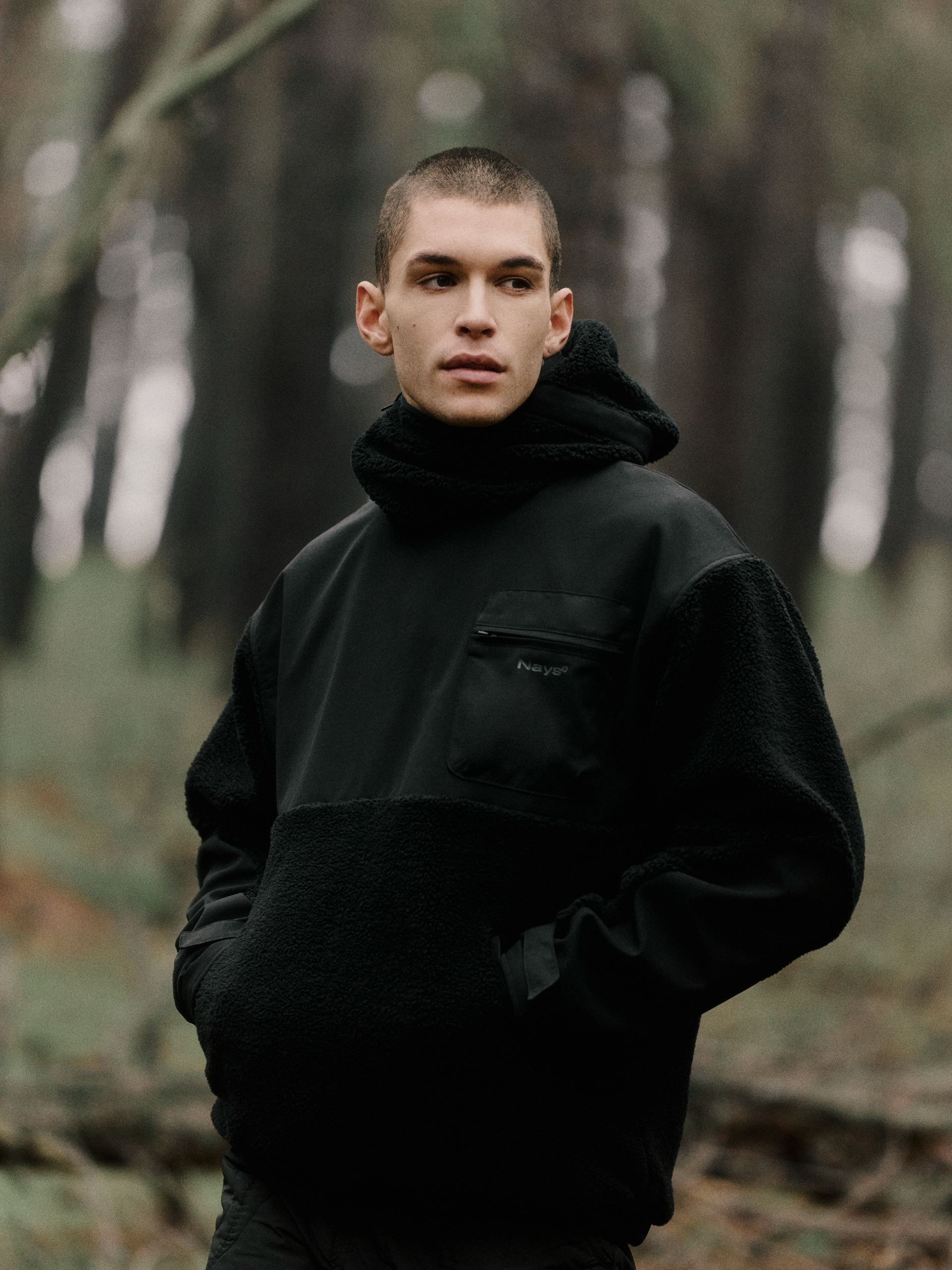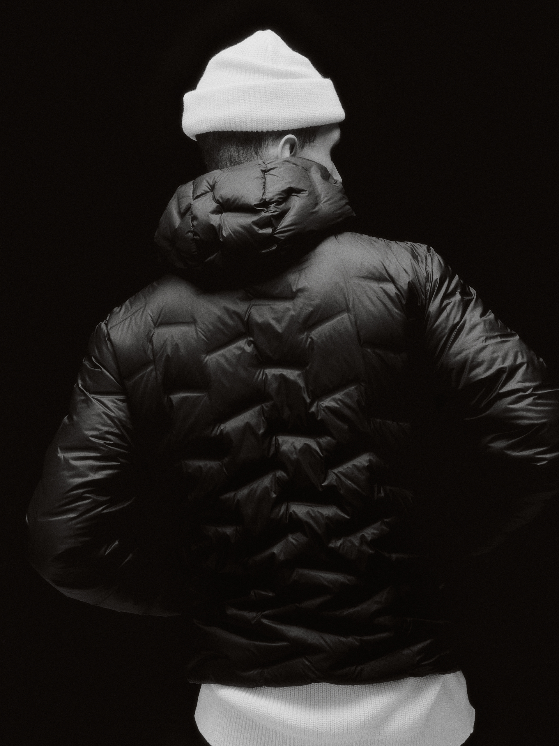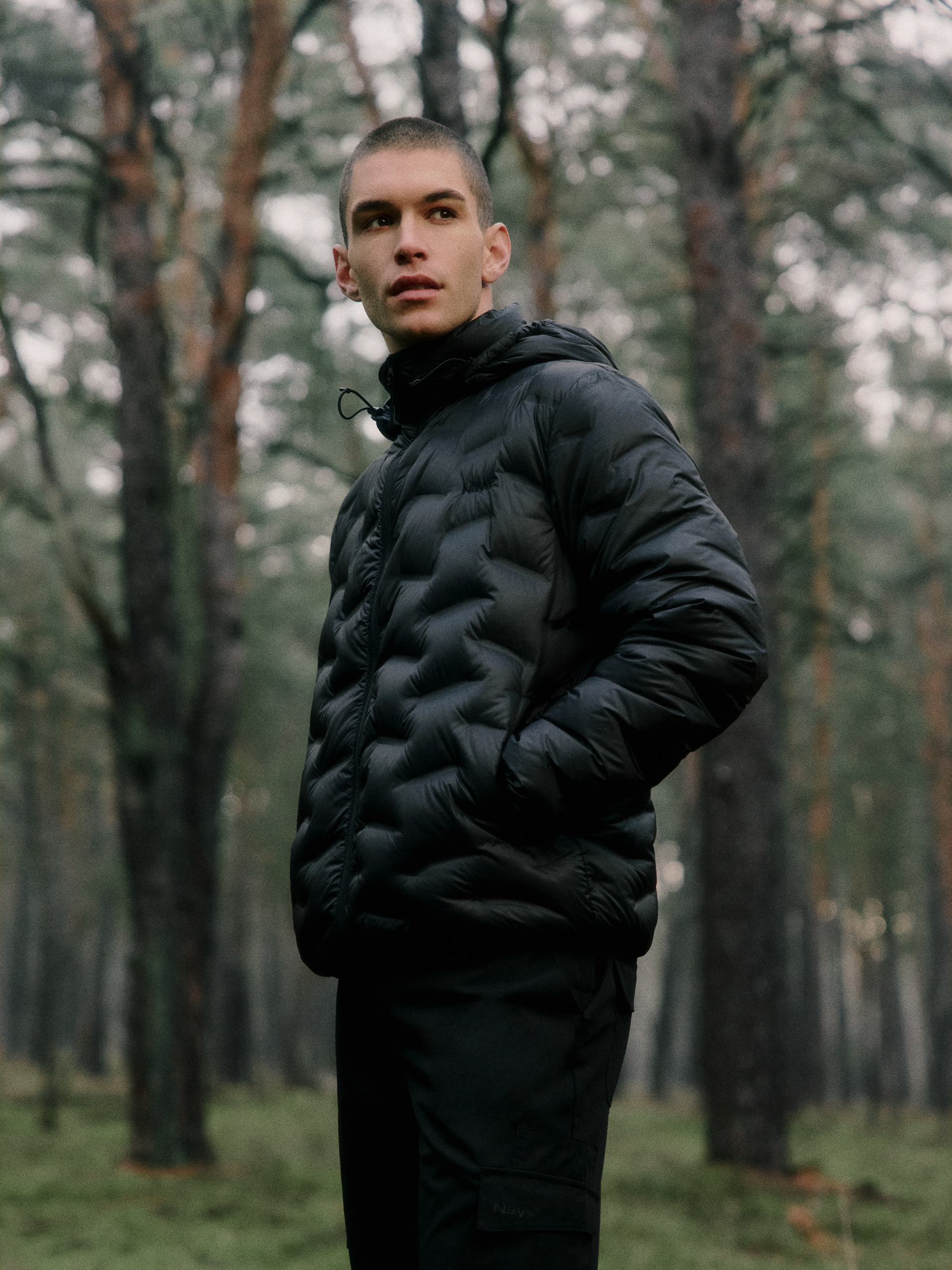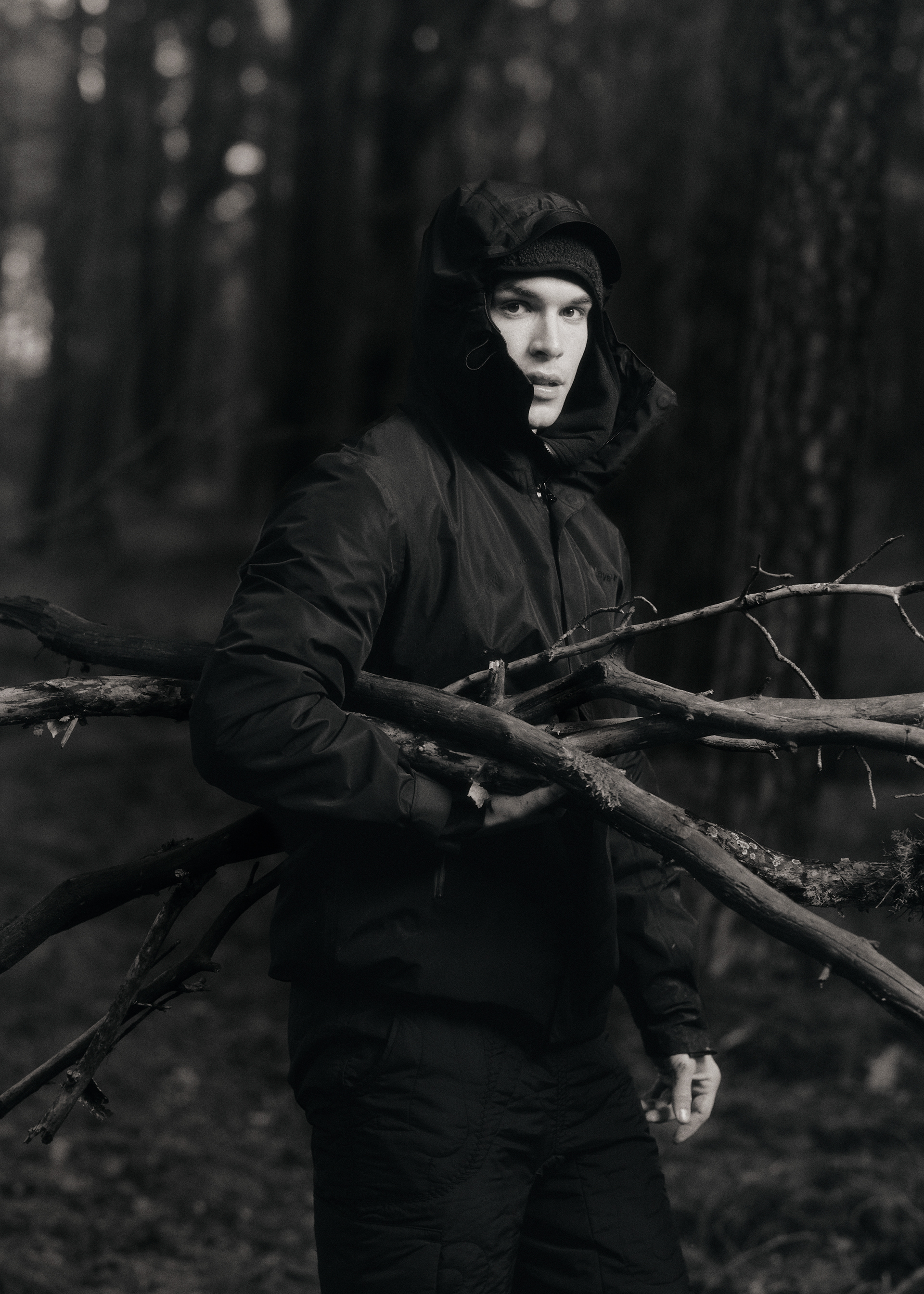 Technical outdoorwear design with 3-layer materials, PFAS-free coatings and a focus on breathability, waterproofing and function.